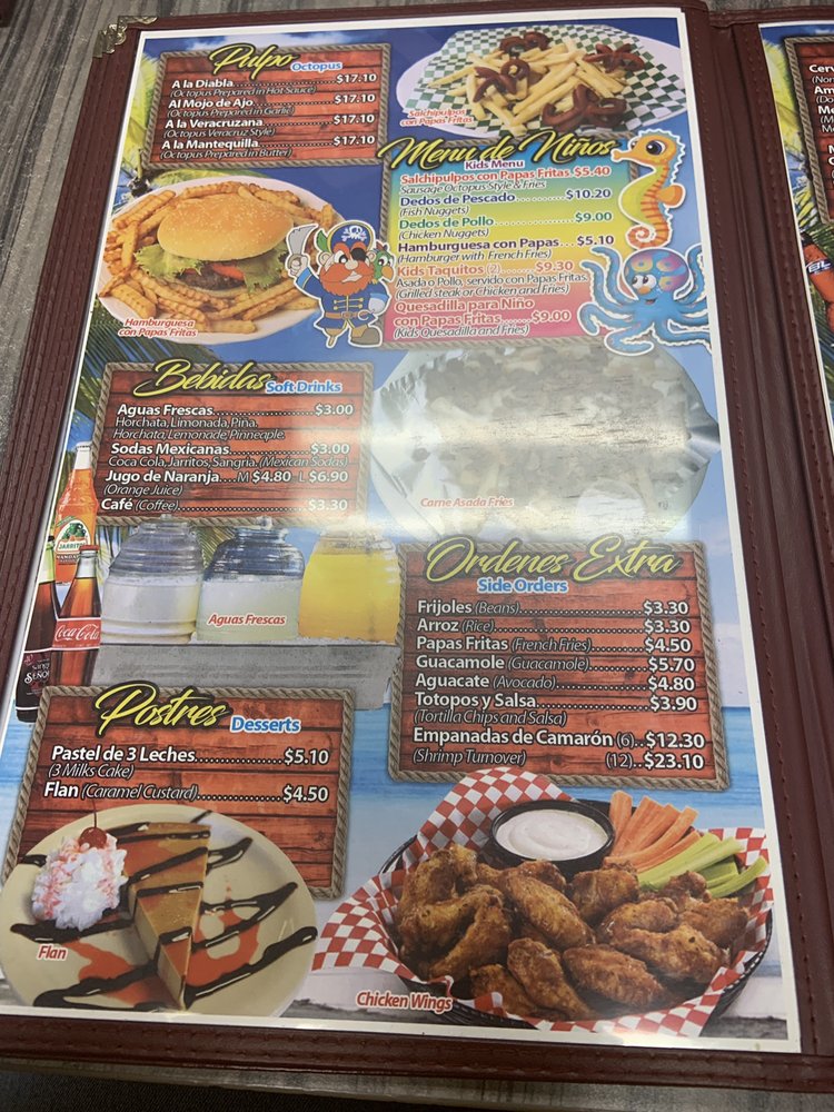 Introducing the Menu at Mariscos Mi Nuevo Nayarit